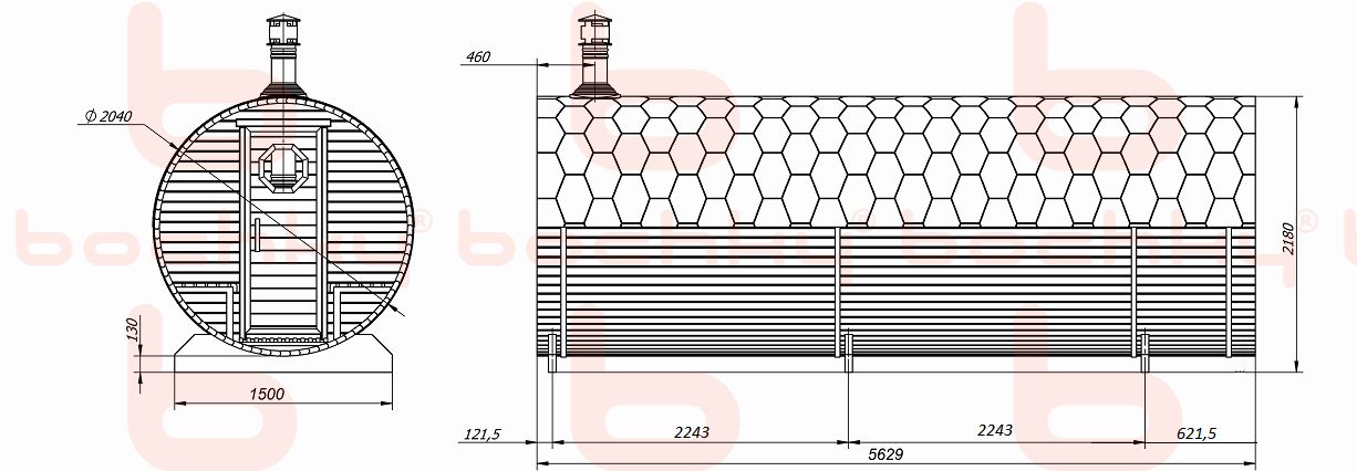 Приобретая баню-бочку «Мега-2» с козырьком, вы получаете комфортное, уютное размещение дружной компании. Баня устанавливается краном-манипулятором в собранном виде или собирается на участке за один день.